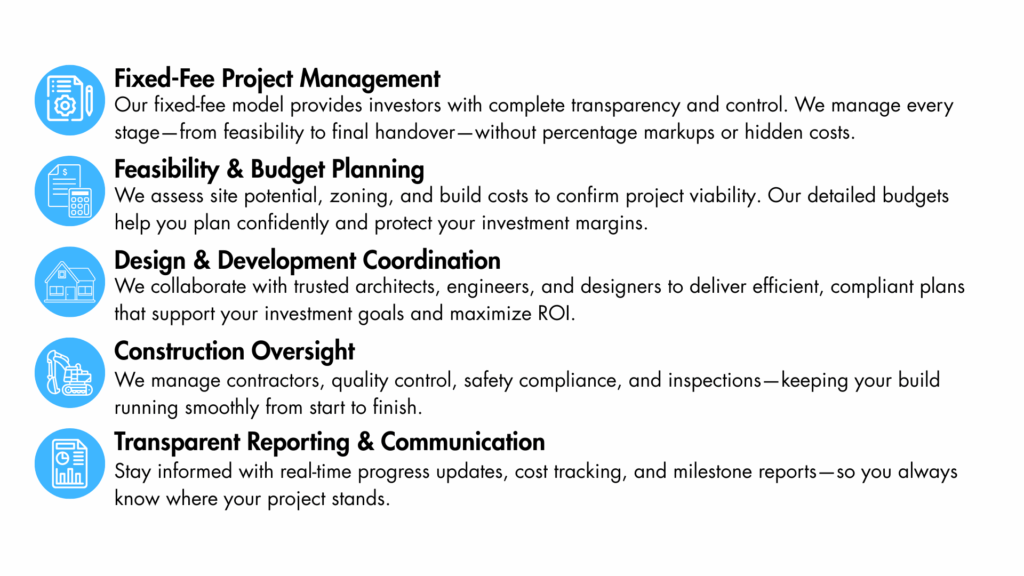 Our services are crafted to meet investor needs, focusing on ROI, market trends, and flexible buildout options.